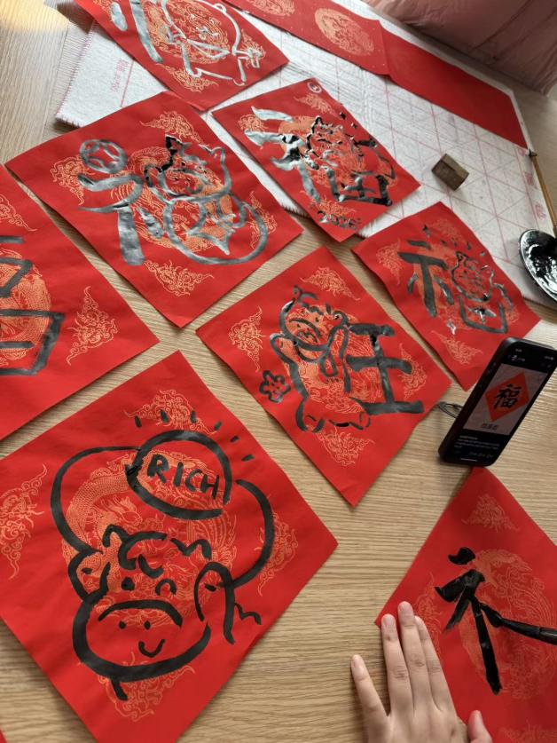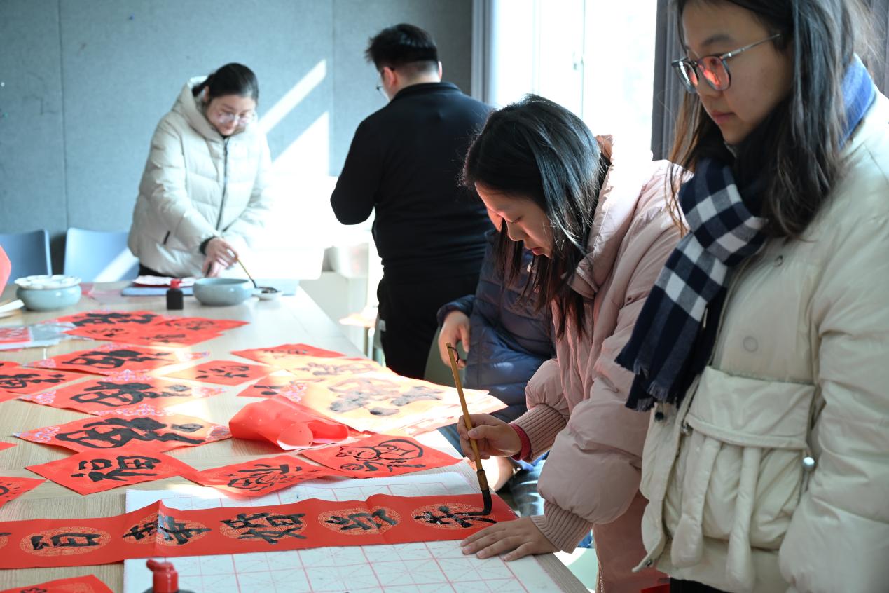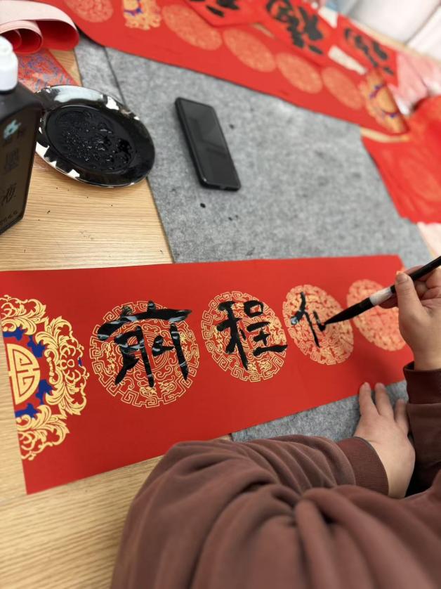 活动还特别设置了现场书写环节。一方长桌,笔墨齐备,为教职工提供了挥毫泼墨、展示才艺的舞台。他们或凝神静气,或挥洒自如,一笔一划间,一个个饱满有力的“福”字、一幅幅寓意吉祥的春联跃然纸上。